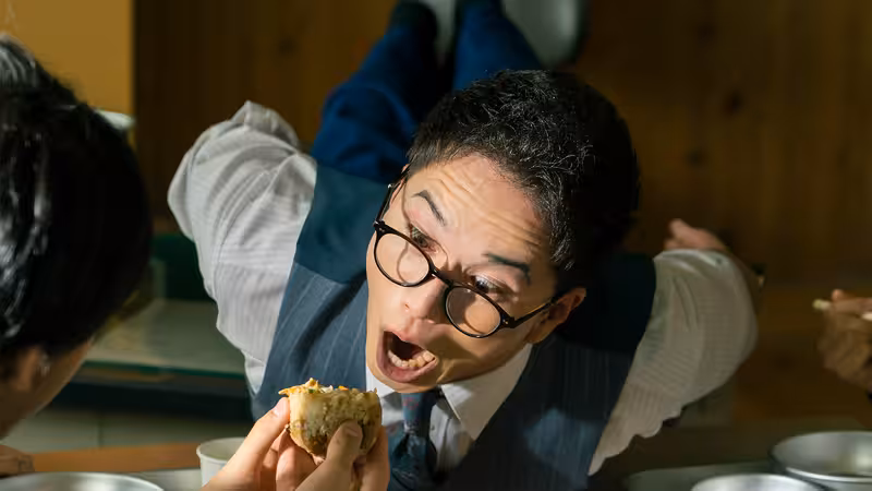 今作品では、甘利田先生の”全身これ鋭利な刃物”と言わんばかりのキレッキレの動きがさらに変態度を増し、他の演者が危機を感じるレベルの暴走ぶり。変質者にしか見えない奇妙な私服姿で給食を食べるシーンも見どころです。