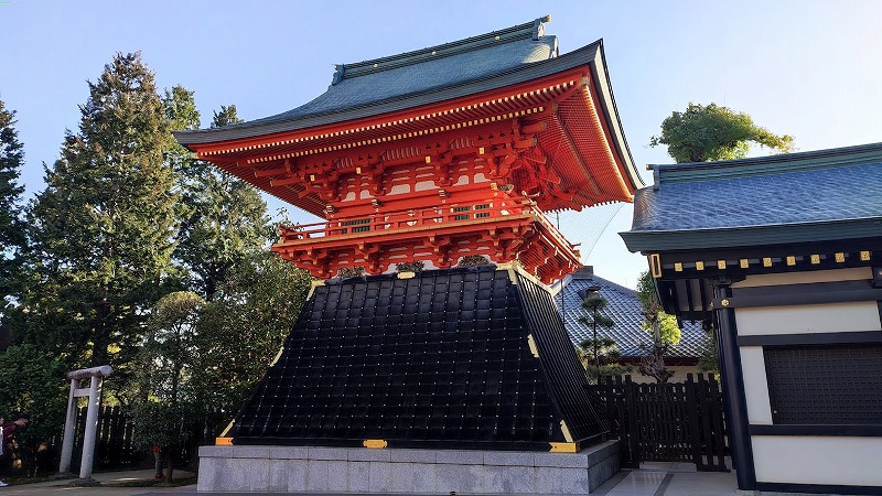 敷地に入ると、隋神門・鼓桜などの建物の鮮やかな朱色が目を引きます。