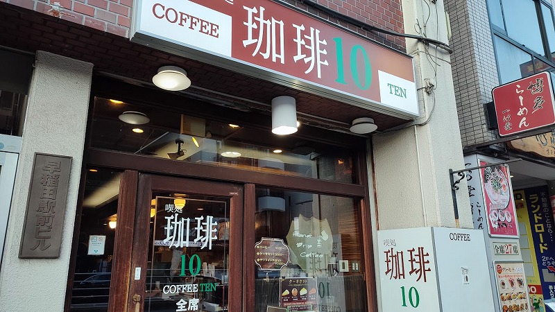 その中で今回私が選んだ喫茶店は、穴八幡宮から徒歩10分弱の早稲田通り沿いにある「珈琲10(コーヒーテン)」。