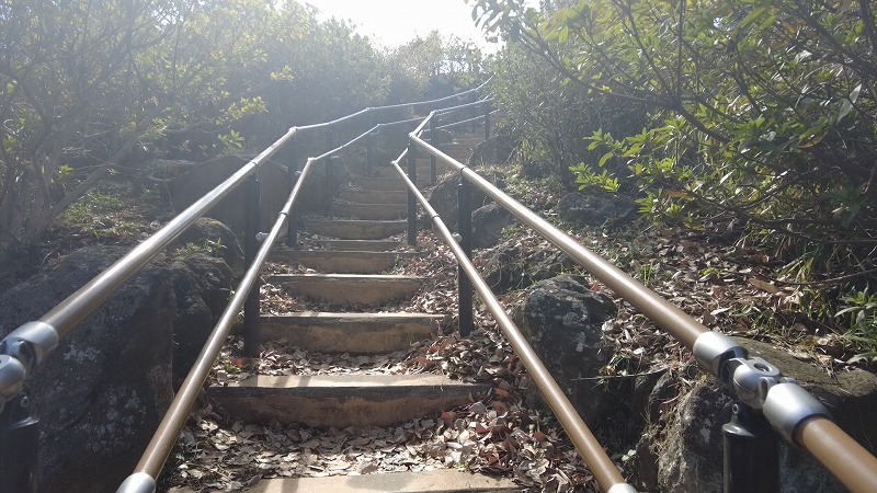 麓から山頂までは3分ぐらいでした。山というよりちょっと高めの丘というイメージ。なので、運動不足の私でも難なく上ることが出来ました。ただ、山頂付近の階段は急なので、普通の散歩では使わない足の筋力を使うため、ちょびっと息が上がるかも。
